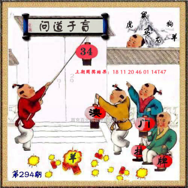 294期正版彩图挂牌:挂:34 爆:羊 挂牌成语:问道于盲 挂牌出肖:虎狗鼠羊马龙
